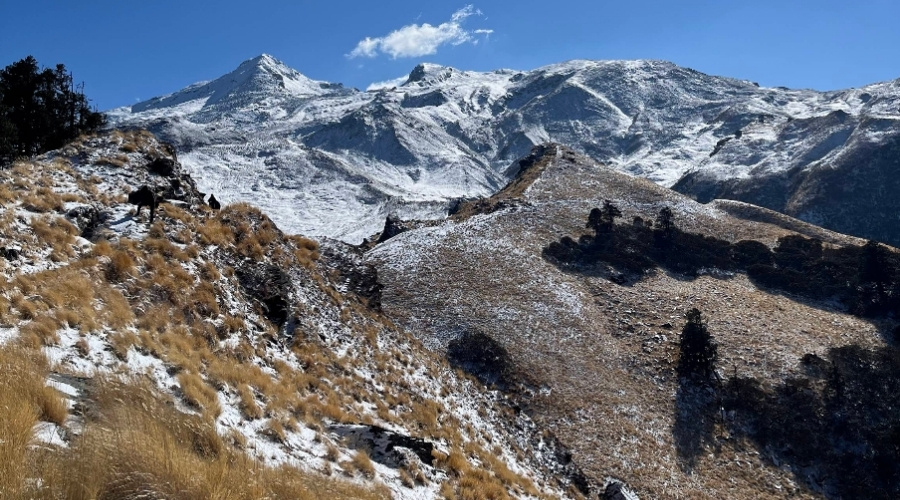 Reaching an altitude of around 3,700 m (12,150 ft), the trail unfolds through oak, pine, and rhododendron forests, opening into peaceful meadows like Pushtara Bugyal. Campsites along the route offer quiet views of endless valleys and snow-draped peaks, creating a perfect balance of beauty and adventure.