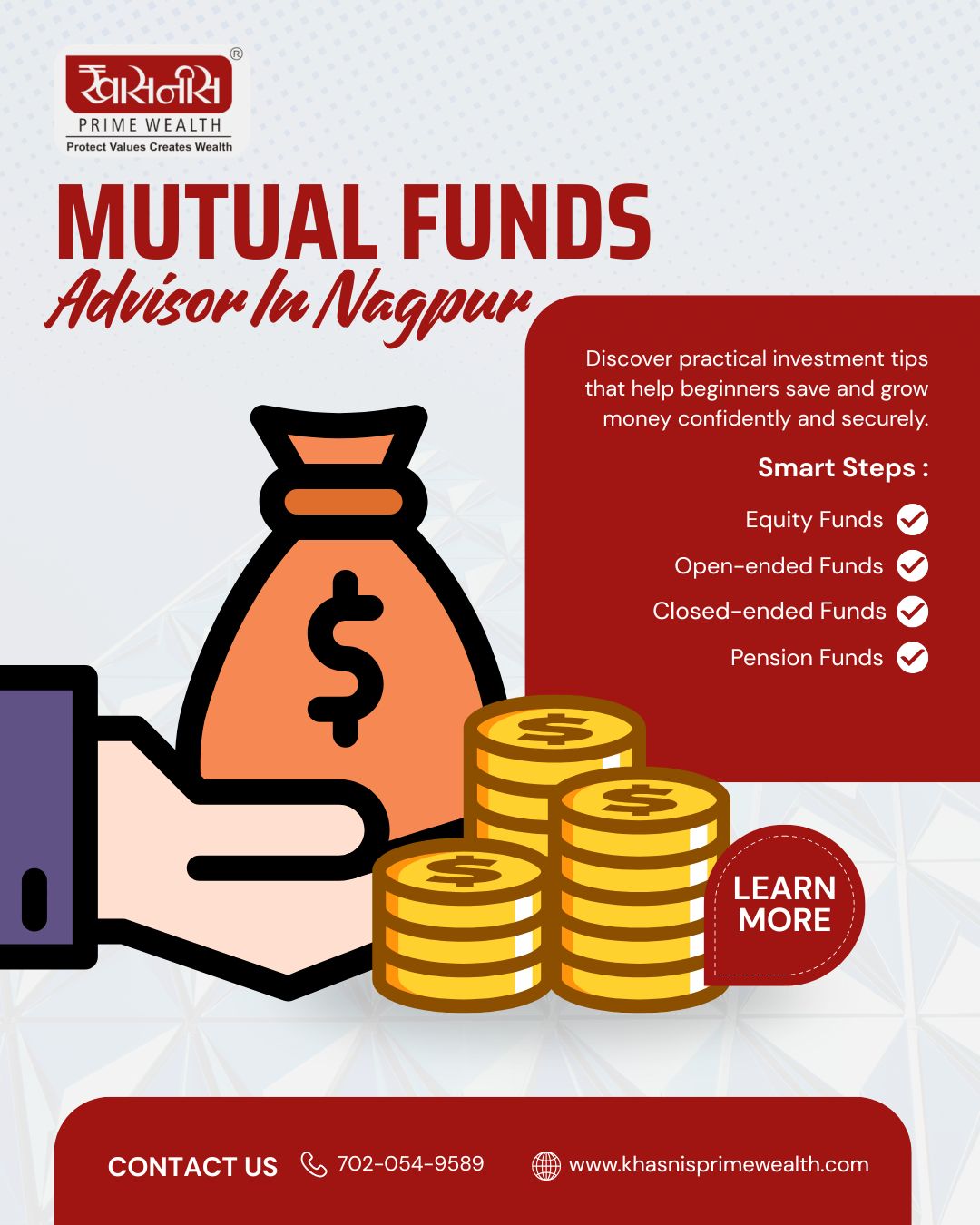 Based in Nagpur, Khasnis Prime Wealth has earned its reputation as one of the best mutual fund advisors in India by focusing on transparency, education, and customer satisfaction. Their goal is simple — to help every investor grow steadily and securely.