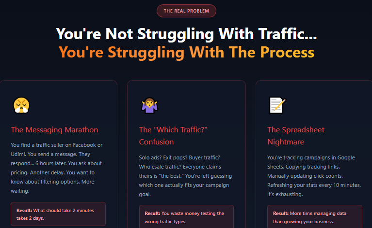 Traditional traffic buying involves research, negotiations, and manual tracking. This automated traffic generation tool reduces those steps significantly.